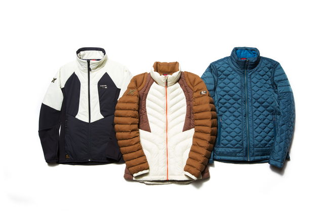 [사진] 햇빛을 받으면 스스로 발열하는 충전재를 사용해 보온성을 향상시킨K2 솔라 패딩 3종. 왼쪽부터 ‘EXM 패딩 하이브리드 재킷’, ‘피아톤’, ‘하이킹 솔라필(Solarfil) 패딩 재킷’.