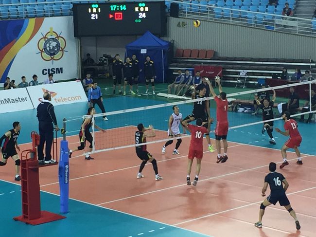 한국 상무배구팀이 2015 세계군인체육대회서 이란을 꺾으며 파죽지세를 이어갔다.