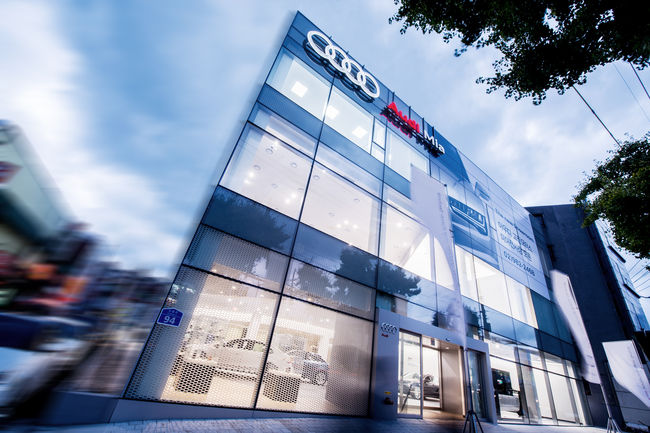 서울 강북구 도봉로 94에 신축한 아우디 미아 전시장은 연면적 1629m2(439평), 3층 규모의 전시장으로 총 17대 차량을 동시에 전시할 수 있는 공간이 마련돼 있다.