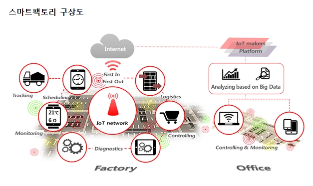 '스마트 공장'은 제조현장에 IoT 기술을 융합해 생산성을 높이고 근로환경과 업무환경을 최적화한 공장을 말한다. 미래창조과학부와 산업통상자원부가 공동으로 진행하는 '제조업 혁신 3.0' 프로젝트에 따르면 2020년까지 전국의 중소·중견공장 중에 약 1만 개의 스마트 공장 구축을 목표로 현재 시범 사업을 추진하고 있다.