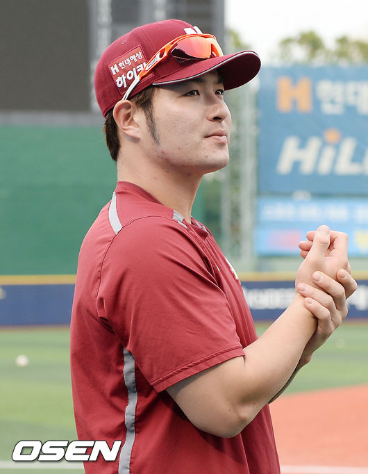 7일 오후 서울 목동구장에서 '2015 타이어뱅크 KBO 리그' 넥센 히어로즈와 SK 와이번스의 와일드카드 결정 1차전이 열릴 예정인 가운데, 넥센 박병호가 몸을 풀고 있다.