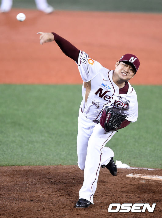 7일 오후 서울 목동구장에서 '2015 타이어뱅크 KBO 리그' 넥센 히어로즈와 SK 와이번스의 와일드카드 결정 1차전, 7회초 2사 만루에서 넥센 손승락이 마운드에 올라 역투하고 있다.