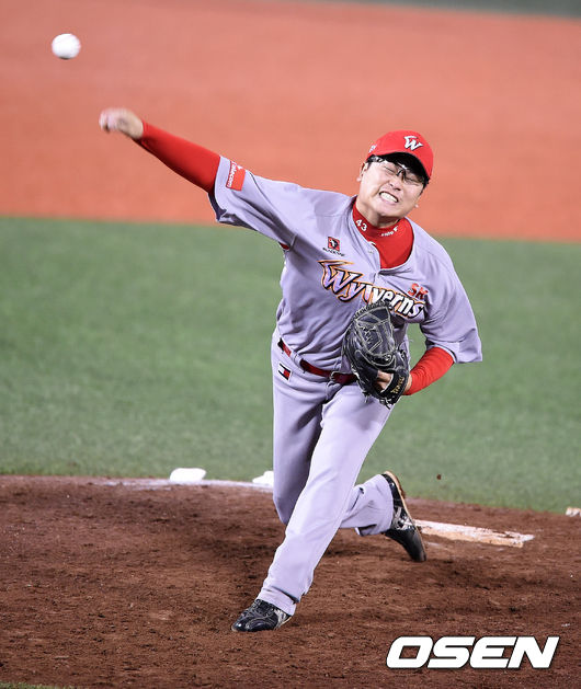 7일 오후 서울 목동구장에서 '2015 타이어뱅크 KBO 리그' 넥센 히어로즈와 SK 와이번스의 와일드카드 결정 1차전, 9회말 SK 전유수가 역투하고 있다.