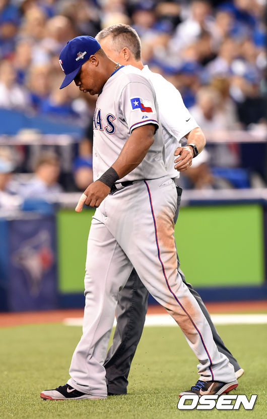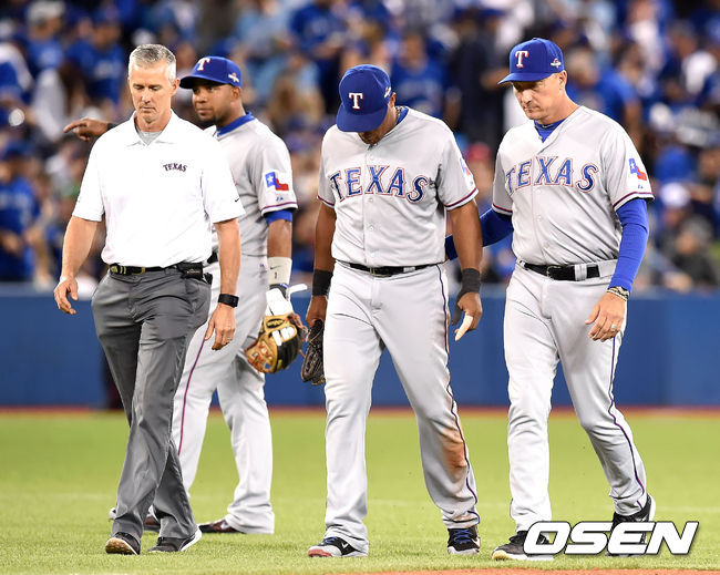텍사스 레인저스에 비상이 걸렸다. 3루수이자 중심타자 애드리안 벨트레(36)가 허리 통증으로 2차전은 물론 엔트리 제외 가능성까지 검토되고 있다.