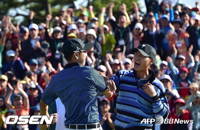 한편 배상문은 '마지막 퍼팅 때 눈물이 나오지 않았나, 병역 문제로 마음 고생이 많았는데 그와 같은 생각은 들지 않았나'라는 질문에 "울지 않았다. 팀이 이기기 위해 의미가 큰 퍼팅이라고 생각했다"면서 "상당히 많은 분들의 응원에 힘이 됐다. 그 힘을 받아 마지막 퍼팅이 성공한 것 같다. 병역문제는 생각을 안했다. 퍼팅에 집중했고 생각한대로 냉정하게 들어갔다"고 담담하게 말했다.