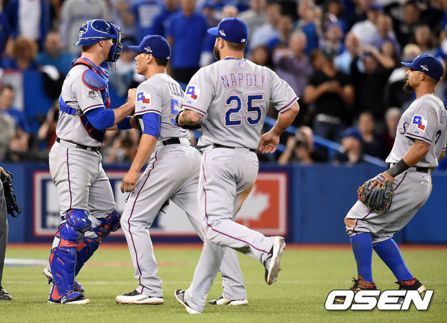 텍사스는 10일(이하 한국시간)캐나다 온타리오주 토론토 로저스센터에서 열린 토론토 블루제이스와 디비전시리즈 2 차전에서 연장 14회 승부에서 6-4로 승리했다. 원정 1~2차전에서 2연승을 달리며 리그챔피언십시리즈 진출에 1승만을 남겨놓았다.