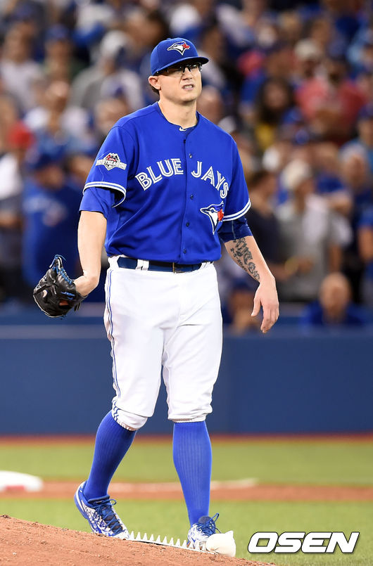 8회초 2사 2루 토론토 시슬이 나폴리에게 적시타를 허용한 뒤 아쉬워하고 있다. / youngrae@osen.co.kr