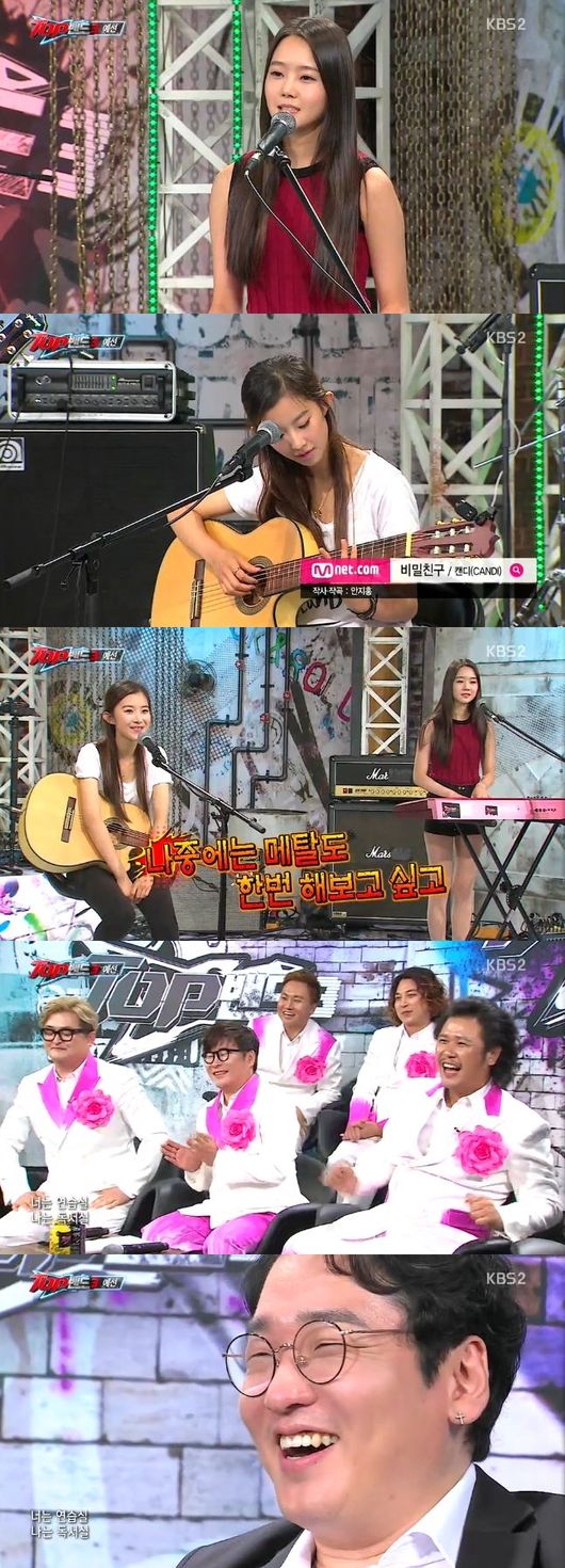 10일 오후 방송된 KBS 2TV 예능프로그램 '톱밴드3'에서는 미소녀 밴드 캔디의 등장에 미소를 짓는 코치들의 모습이 그려졌다.