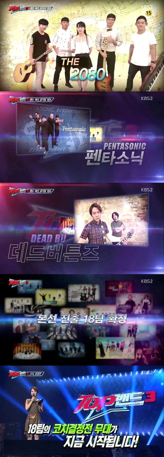 10일 오후 방송된 KBS 2TV 예능프로그램 '톱밴드3'에서는 팀 예선과 개인 예선을 거쳐 18팀의 본선 진출 팀이 확정됐다.
