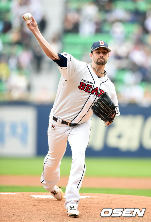 10일 오후 서울 잠실야구장에서 열린 '2015 타이어뱅크 KBO 리그' 포스트시즌 두산 베어스와 넥센 히어로즈의 준플레이오프 1차전,니퍼트가 힘차게 공을 던지고 있다.