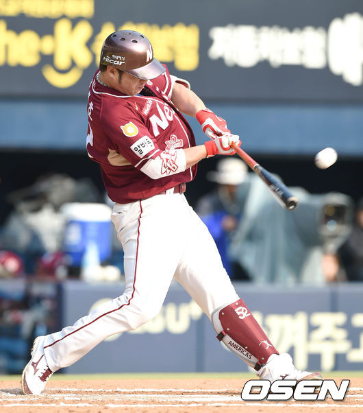 10일 오후 서울 잠실야구장에서 열린 '2015 타이어뱅크 KBO 리그' 포스트시즌 두산 베어스와 넥센 히어로즈의 준플레이오프 1차전,6회초 박병호가 니퍼트를 상대로 솔로홈런을 치고 있다.