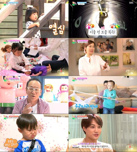 10일 오후 방송된 SBS 예능프로그램 '오 마이 베이비(이하 오마베)에서는 김태우와 두 딸이 춘천 남이섬으로 여행을 떠나서 간식을 걸고 보물찾기를 했다. 김태우의 막내 딸인 지율은 보물을 고작 한개 찾았지만 찾은 보물 마저도 꽝이어서 실망했다. 이어서 김태우와 두 딸은 춘천의 대표 음식인 닭갈비와 볶음밥 그리고 막국수를 먹으면서 행복해했다. 특히 지율은 손가락에 묻은 막국수 양념까지도 빨아먹으면서 맛을 아는 모습을 보여줬다.