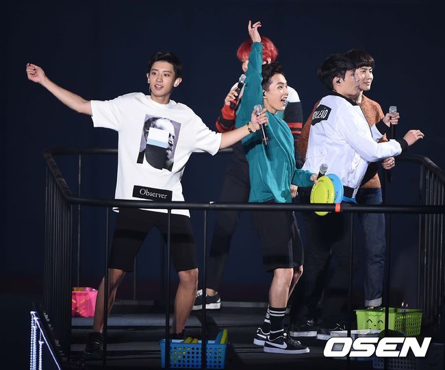 엑소가 10일 오후 서울 고척동 고척 스카이돔에서 열린 '2015 엑소-러브 콘서트 인 돔'(2015 EXO-Love CONCERT in DOME)에서 팬들에게 이벤트를 진행하고 있다.