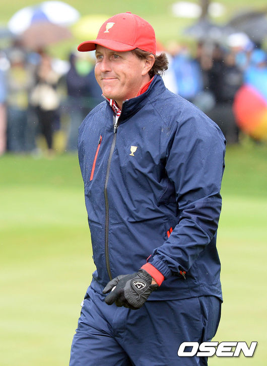 11일 오전 인천 송도 잭 니클라우스GC에서 열린 '2015 프레지던츠컵' 최종라운드 싱글 매치에서 필 미켈슨이 미소를 짓고 있다.