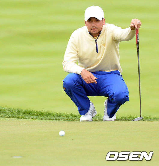 11일 오전 인천 송도 잭 니클라우스GC에서 열린 '2015 프레지던츠컵' 최종라운드 싱글 매치에서 제이슨 데이가 퍼팅 라인을 살피고 있다.