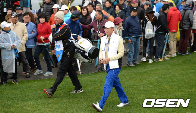 11일 오전 인천 송도 잭 니클라우스GC에서 열린 '2015 프레지던츠컵' 최종라운드 싱글 매치에서 배상문이 티샷 후 이동하고 있다.