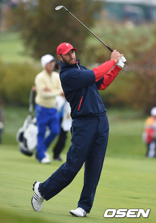 11일 오전 인천 송도 잭 니클라우스GC에서 열린 '2015 프레지던츠컵' 최종라운드 싱글 매치에서 더스틴 존슨이 세컨샷을 시도하고 있다.