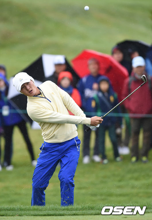11일 오전 인천 송도 잭 니클라우스GC에서 열린 '2015 프레지던츠컵' 최종라운드 싱글 매치에서 데니 리가 세컨샷을 하고 있다.