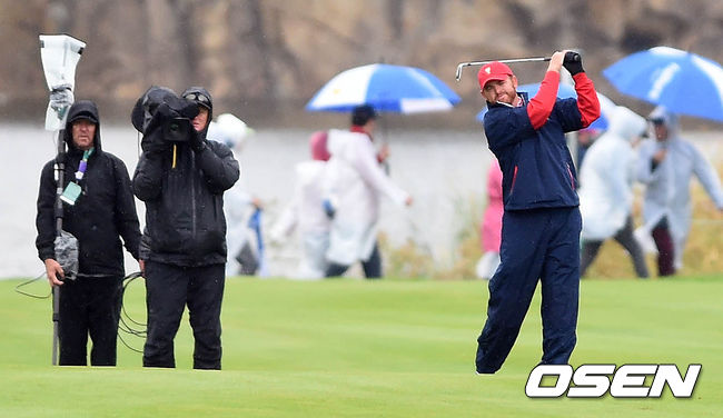 11일 오전 인천 송도 잭 니클라우스GC에서 열린 '2015 프레지던츠컵' 최종라운드 싱글 매치에서 J.B. 홈즈가 세컨샷을 하고 있다.