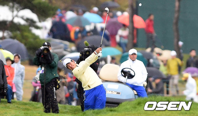11일 오전 인천 송도 잭 니클라우스GC에서 열린 '2015 프레지던츠컵' 최종라운드 싱글 매치에서 히데키 마쓰야마가 세컨샷을 시도하고 있다.