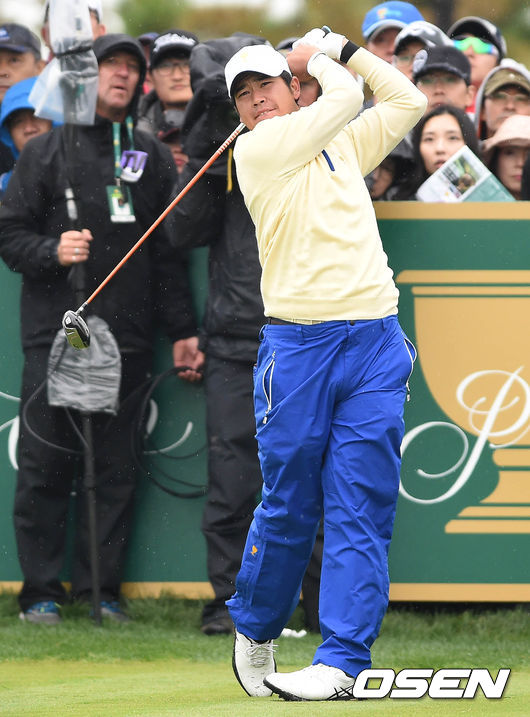 11일 오전 인천 송도 잭 니클라우스GC에서 열린 '2015 프레지던츠컵' 최종라운드 싱글 매치에서 히데키 마쓰야마가 티샷을 하고 있다.