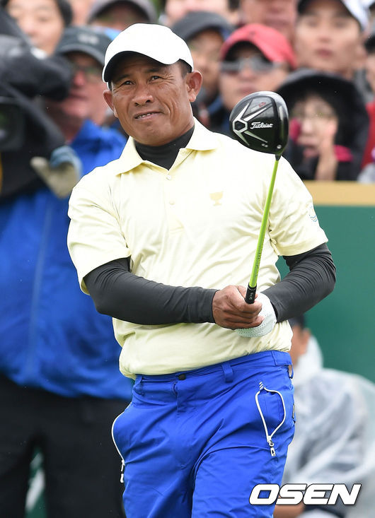 11일 오전 인천 송도 잭 니클라우스GC에서 열린 '2015 프레지던츠컵' 최종라운드 싱글 매치에서 통차이 자이디가 티샷을 하고 있다.