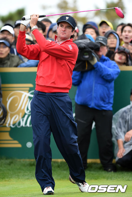 11일 오전 인천 송도 잭 니클라우스GC에서 열린 '2015 프레지던츠컵' 최종라운드 싱글 매치에서 버바 왓슨이 티샷을 하고 있다.