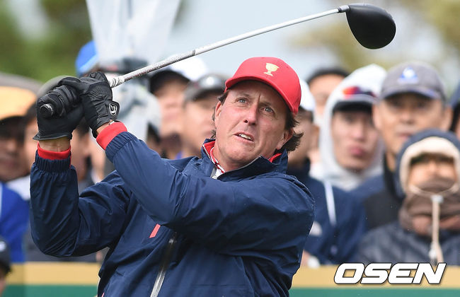 11일 오전 인천 송도 잭 니클라우스GC에서 열린 '2015 프레지던츠컵' 최종라운드 싱글 매치에서 필 미켈슨이 티샷을 하고 있다.