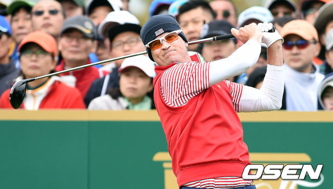 11일 오전 인천 송도 잭 니클라우스GC에서 열린 '2015 프레지던츠컵' 최종라운드 싱글 매치에서 잭 존슨이 티샷을 하고 있다.