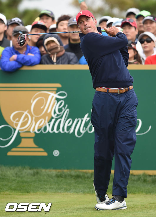11일 오전 인천 송도 잭 니클라우스GC에서 열린 '2015 프레지던츠컵' 최종라운드 싱글 매치에서 매트 쿠차가 티샷을 하고 있다.