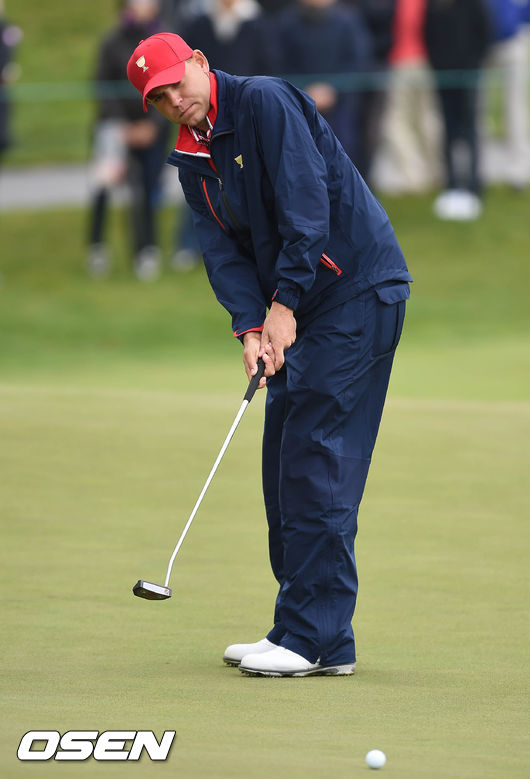 11일 오전 인천 송도 잭 니클라우스GC에서 열린 '2015 프레지던츠컵' 최종라운드 싱글 매치에서 빌 하스가 퍼팅을 하고 있다.