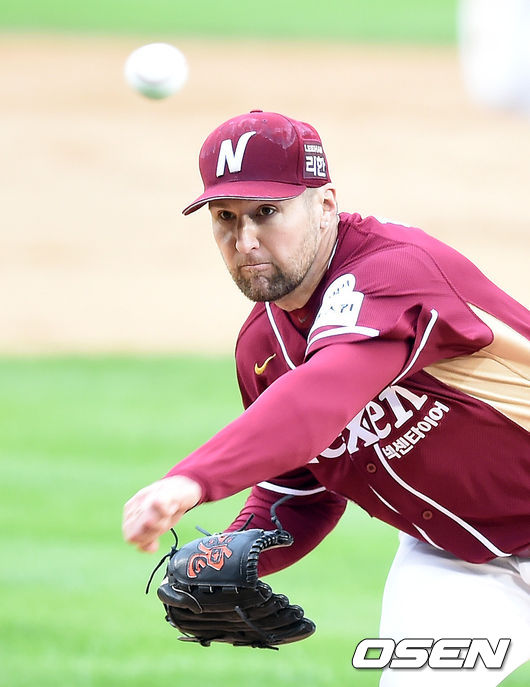 11일 오후 서울 잠실야구장에서 열린 '2015 타이어뱅크 KBO 리그' 포스트시즌 두산 베어스와 넥센 히어로즈의 준플레이오프 2차전, 1회말 넥센 피어밴드가 역투하고 있다.