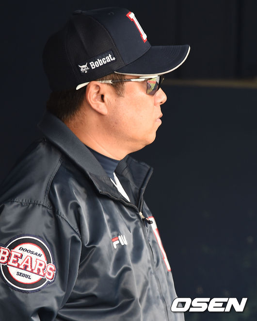 11일 오후 서울 잠실야구장에서 열린 '2015 타이어뱅크 KBO 리그' 포스트시즌 두산 베어스와 넥센 히어로즈의 준플레이오프 2차전, 4회말 두산 김태형 감독이 덕아웃에서 경기를 지켜보고 있다.
