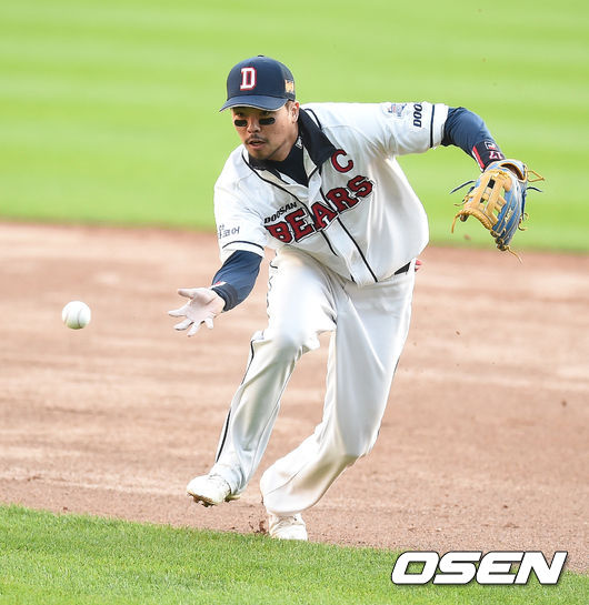 맨손 캐치 시도하는 오재원