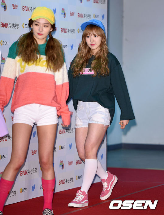 걸그룹 레드벨벳 슬기, 웬디가 포토월로 이동하고 있다.