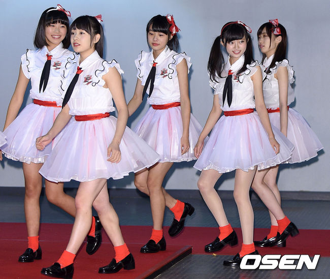 일본 걸그룹 AKB48이 포토월로 이동하고 있다.