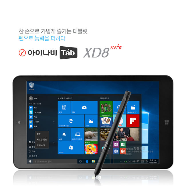 이번에 출시하는 '아이나비탭 XD8 노트'는 실제 펜과 유사한 필기감을 자랑하는 '디지타이저 펜 (digitizer pen)'을 제공하여 활용성을 극대화 했다. 디지타이저 펜은 1024레벨의 필압 인식으로 자연스럽고 부드러운 노트 필기는 물론 그림 및 사진편집, 웹 검색을 편리하게 할 수 있다.