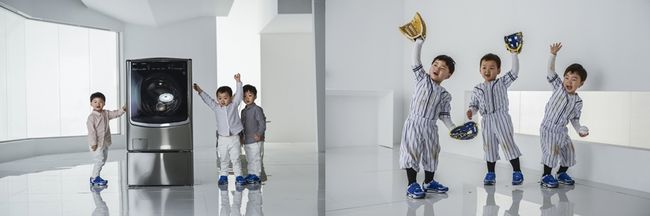 LG전자가 지난 8월 온에어 한 트롬 트윈워시 '생각의 세탁' 광고가 화제를 모으고 있는 가운데 국민 귀염둥이 대한, 민국, 만세가 등장한 TV CF 속 깜찍한 비하인드 컷이 공개됐다.