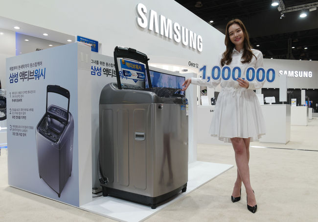 지금까지 판매된 삼성전자 세탁기 중 가장 빠른 판매 실적으로 분당 2대씩 하루에 약 3500대 이상이 팔린 셈이다. ‘액티브워시’ 100만대를 나란히 진열하면 서울에서 부산까지 직선 거리의 2배 정도의 길이다.