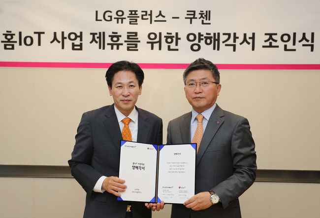 LG유플러스(부회장 이상철, www.uplus.co.kr)가 생활가전 전문기업 쿠첸(대표이사 이대희, www.cuchen.com)과 손잡고 주방 생활가전의 IoT서비스 대중화 및 인텔리전스 서비스 제공을 위한 양해각서(MOU)를 체결했다고 14일 밝혔다.