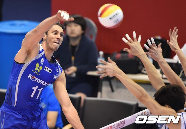 김종민 감독이 이끄는 대한항공은 14일 대전충무체육관에서 열린 2015-2015 V리그 남자부 삼성화재와 경기서 산체스(20점)와 김학민(16점) 쌍포의 활약에 힘입어 세트 스코어 3-0(25-20 36-34 25-16)으로 셧아웃 시키며 승리했다. 이날 승리로 대한항공은 2연승을 달리며 OK저축은행과 어깨를 나란히 했다.