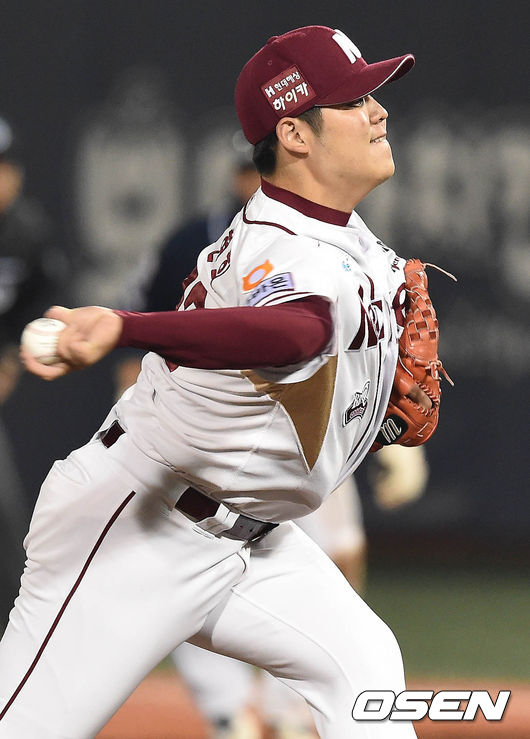 14일 오후 서울 목동구장에서 열린 '2015 타이어뱅크 KBO 리그' 준플레이오프 4차전 넥센 히어로즈와 두산 베어스의 경기 9회초 무사 1,2루 한현희가 역투하고 있다.