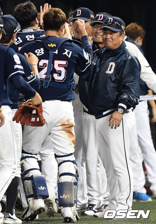 이어 언제 역전이 가능하다는 생각이 들었는지 물었을 때는 "9회에 김현수가 치고 나서는 역전할 수 있겠다 싶었는데 그 전에는 역전이 가능하다는 생각을 하지 못했다. 오재일이 나간 뒤 김현수가 치면 경기가 재미있어지겠다 생각은 했다"고 덧붙였다.