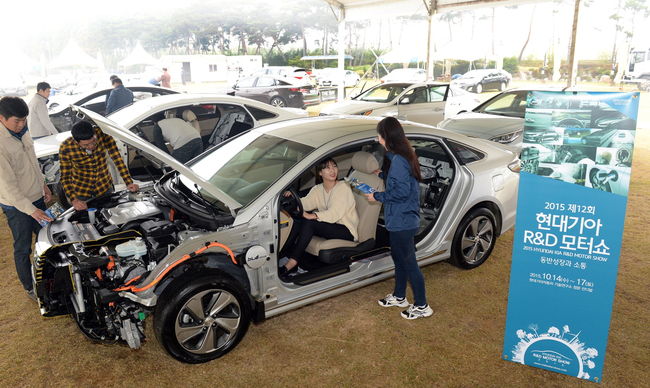 한편, 현대·기아차는 올해로 12회째를 맞은 ‘R&D 모터쇼’에서 ‘동반성장과 소통’을 주제로 완성차 87대와 절개차량·차체골격 4대를 비롯해 친환경, 연비, 경량화 관련 신기술을 대거 전시했다.