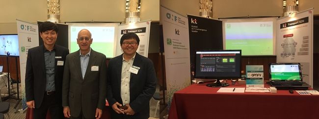 KT(회장 황창규, www.kt.com)는 독일 뒤셀도르프에서 진행 중인 네트워크 인프라 분야 글로벌 행사 'SDN & OpenFlow World Congress'에 KT가 개발한 '광 전송 SDN(이하 T-SDN)'솔루션을 전시해 호평을 받았다고 14일 밝혔다.