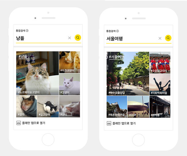 예를 들어 이용자가 ‘서울여행’을 검색하면 이에 해당하는 해시태그를 포함하고 있는 플레인 콘텐츠를 검색 결과로 제공하며 ‘덕수궁돌담길’, ‘북촌한옥마을’, ‘인사동’ 등 해당 콘텐츠에서 함께 쓰인 태그도 보여줘 정보 탐색에 도움을 준다.