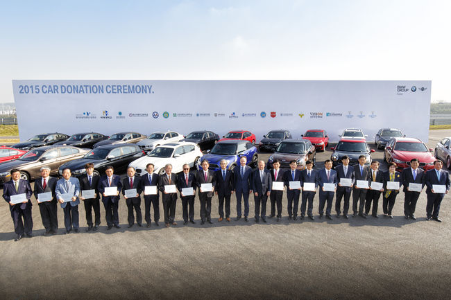 BMW 그룹 코리아는 14일 오전 BMW 드라이빙센터에서 창립 20주년을 기념해 ‘BMW 연구용 차량 기증식’을 갖고 자동차 관련 학교와 기관에 연구용 차량 20대를 기증했다.