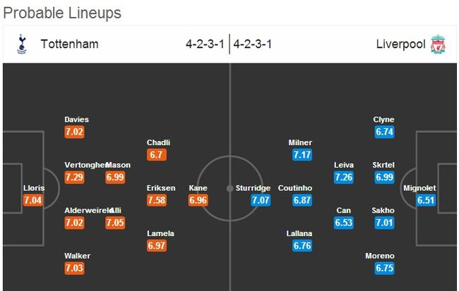 손흥민은 결장할 가능성이 높다. 유럽축구통계전문 영국 후스코어드 닷컴은 토트넘과 리버풀의 선발 명단을 예상하면서 손흥민의 이름을 뺐다. 그러면서 '손흥민은 부상 때문에 출전하지 못하고, 나세르 샤들리가 한 번 더 선발 출격을 준비하고 있다'고 설명했다. 대신 공격진에 최전방의 해리 케인을 비롯해 좌우 측면의 샤들리와 에릭 라멜라, 공격형 미드필더로 크리스티안 에릭센의 출전을 점쳤다.
