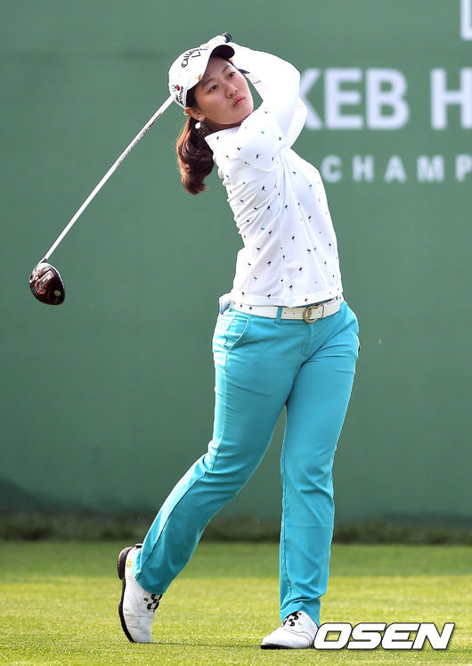16일 오전 인천 중구 스카이72 골프클럽에서 열린 '2015 LPGA KEB하나은행 챔피언십' 2라운드에서 린시유가 티샷을 하고 있다.