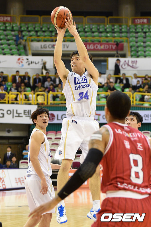 2쿼터 KCC 김효범이 점프슛을 하고 있다.